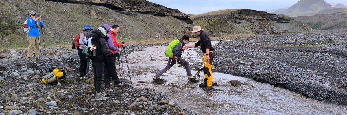The day starts with breakfast and preparation of lunch and snack for the day hike. We begin the trek viewing the Lake Álftavatn. The lake lies in the heart of the Icelandic Highlands, surrounded by breathtaking volcanic landscapes. Lake Álftavatn is known for its stunning natural beauty, with crystal-clear waters reflecting the surrounding mountains and lava fields. We will enjoy different landscape rest of this day as we hike onto the Mælifellssandur with the black sand around us green hills in the background and good view on the magnificent glacier Mýrdalsjökull where the volcano Katla is resting. On this day we will have the opportunity to see Markarfjótsgljufur canyon.