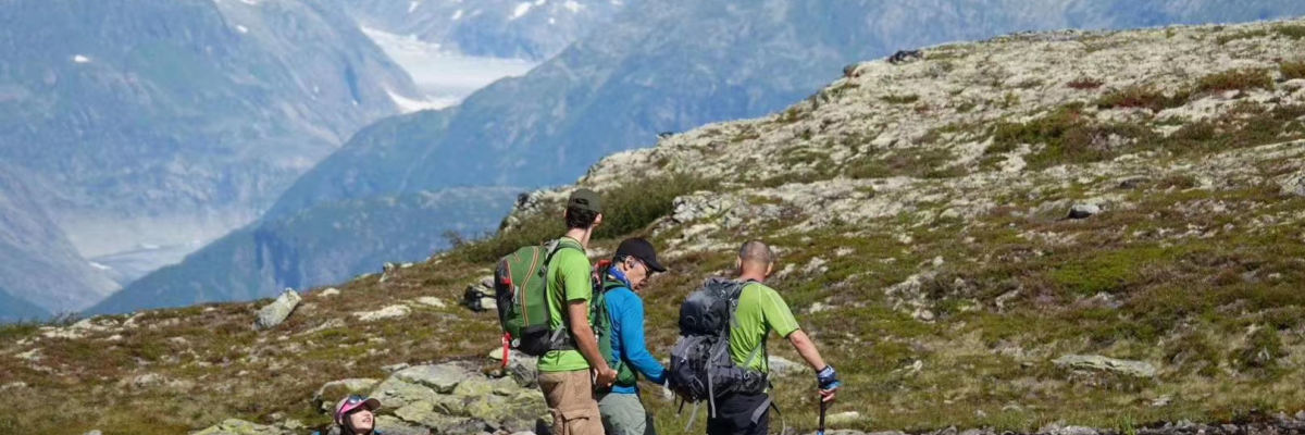 directions to either Lysebotn, Øygardstøl or Kjerag. About 130 km and 2h30 hours from Sandnes. We will leave the vehicles in the parking lot of Øygardstøl. Here starts the march on foot towards Kjerag. Kjerag is one of the walls that dominates the Lysefjorden. Its highest point is 1,110 m above sea level, with the vertical fall to the fjord waters of 984 m. Here is the famous rock of Kjeragbolten, embedded between two walls and suspended in the abyss. The march starts with a succession of strong ascents through inclined granite plates. In the most exposed sections there are installed chains that help us in the march. Once at the top of the mountain you will have to cross two small valleys, which will make us lose altitude and then recover it again. In this area at the beginning of July may be traces of snowfields. In the last section you walk purely on top of the granite plates until you reach the top of the mountain. Spectacular panoramic views of the Lyse fjord, and the waterfall that emerges from the walls. Descent through the same itinerary to the parking. In the afternoon trip back to Sandnes.