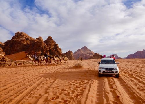 After successfully completing the 5-day trek, enjoy a slow morning and a later start. We leave Petra and drive south into the vast expanse of the Wadi Rum Desert—the only desert in the world recognized as both a natural and cultural UNESCO World Heritage Site, and a filming location for Dune and The Martian.