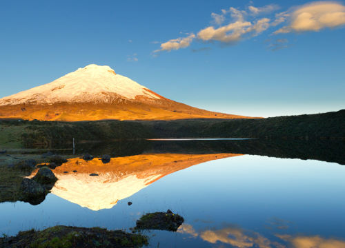After entering the National Park we hike around the Limpiopungo lake at the foot of the volcano. After, we’ll climb the volcano by vehicle until 4500 meters. From the parking lot we can walk until 4.800 meters where there is a refuge (Jose Ribas Refuge) and from there continue up to reach the glacier front at an altitute of 5000 m. Of course, all plans depend on the weather. Also, we’ll visit the Interpretation Center where we’ll learn about the flora and the fauna of the park and the moors protected area. Overnight in Chugchilan village.