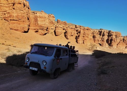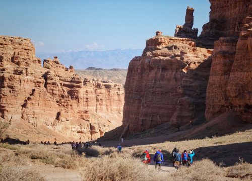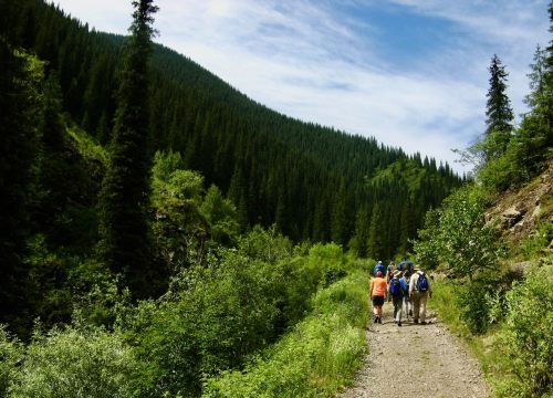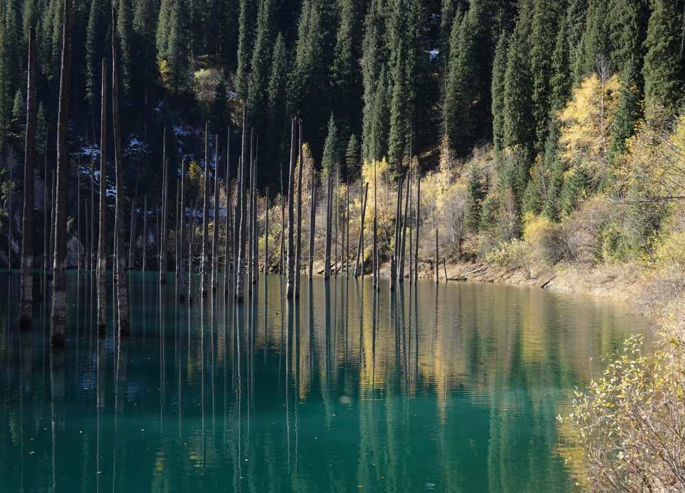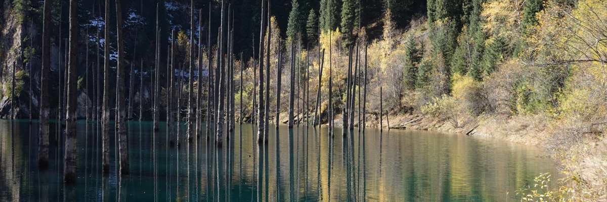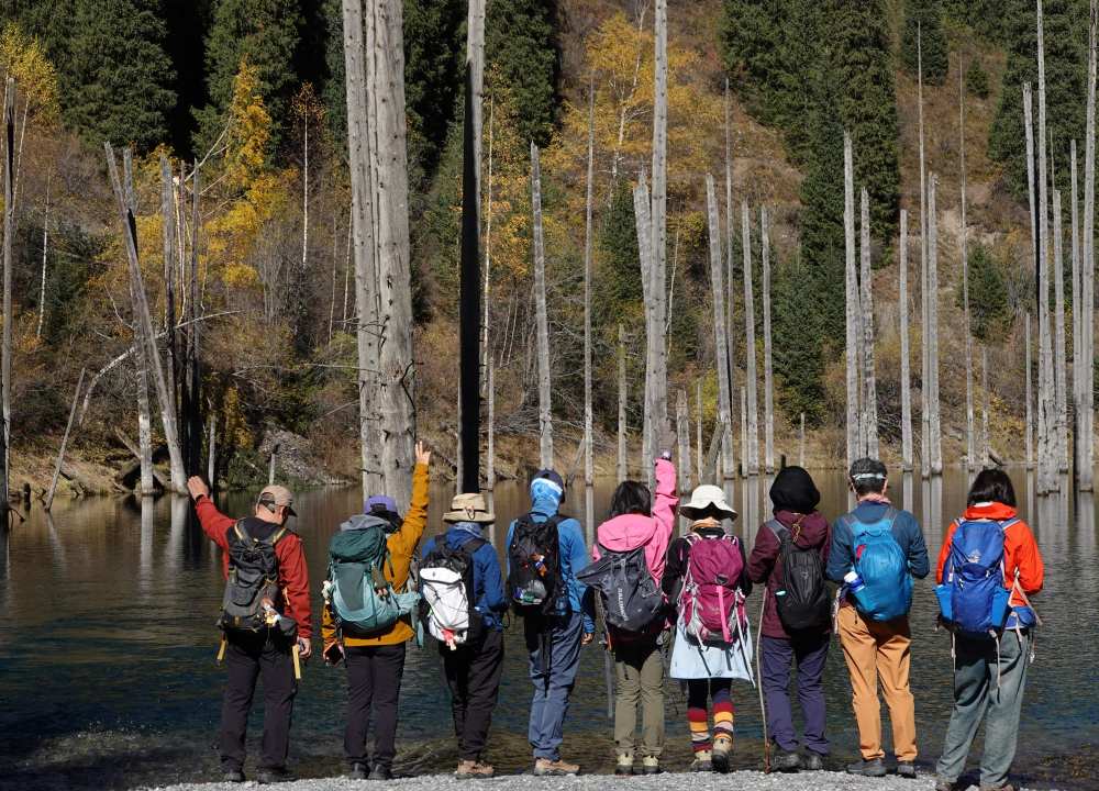前半段,我们在博格达诺维奇冰川触摸天山的第一道雪线;在图尔根峡谷的密林溪谷中徒步,抵达高山瀑布的轰鸣;再走入恰轮峡谷,在“迷你科罗拉多”的赭红岩壁前阅读 1200 万年的地貌故事。随后抵达科尔赛湖区,在双湖之间的山谷步道上行走,见证翡翠湖面倒映雪峰的瞬间;再前往凯恩德湖,探访这片因地震而生、沉没冷杉直立水中的自然奇观。