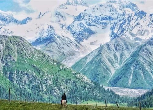 雄伟的天山不仅造就了冰川和森林,更创造了曼妙的立体草原,颠覆你对草原“一望无垠”的刻板印象。或徒步或骑马驰骋在这样的草原上,去拜访靠近森林地带生活着的勇敢的哈萨克人的木屋,邂逅一餐美味的马肉和温暖的馕,喝一杯正宗的奶茶,入住这里的牧民居,了解中亚与草原文化的碰撞,冰川和鲜花的滋养下,抬头仰望万丈星空。