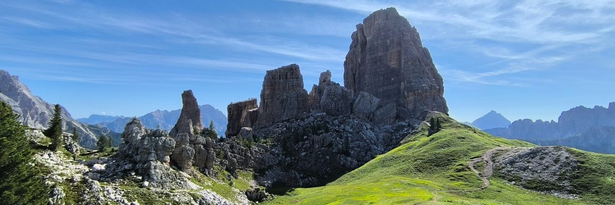从Giau山口至五塔山(Cinque Torri)是多洛米蒂山脉被低估的一条徒步路线。大多数游客只会在Giau山口短暂停留,或者乘坐缆车前往五塔山。事实上,这是多洛米蒂山脉最好的徒步旅行线路之一,在徒步过程中,您可以欣赏到五塔山的全景并步行穿过一战露天博物馆。从Passo di Giau徒步至五塔山的途中,我们会经过Rifugio Averau和Rifugio Scoiattoli等高山小屋补给站,在那里您可以一边欣赏五塔山令人惊叹的岩层壮丽景色。之后,我们可以继续徒步旅行,参观一战露天博物馆。这里曾是第一次世界大战意大利山炮营的所在地,用于对抗从Lagazuoi和Forte Tre Ssasi要塞前来进攻的奥地利人。这条路线始终围绕着战争据点展开,游客们可以游荡在外部和壕沟之间,探索第一次世界大战时的悲惨战斗现场。