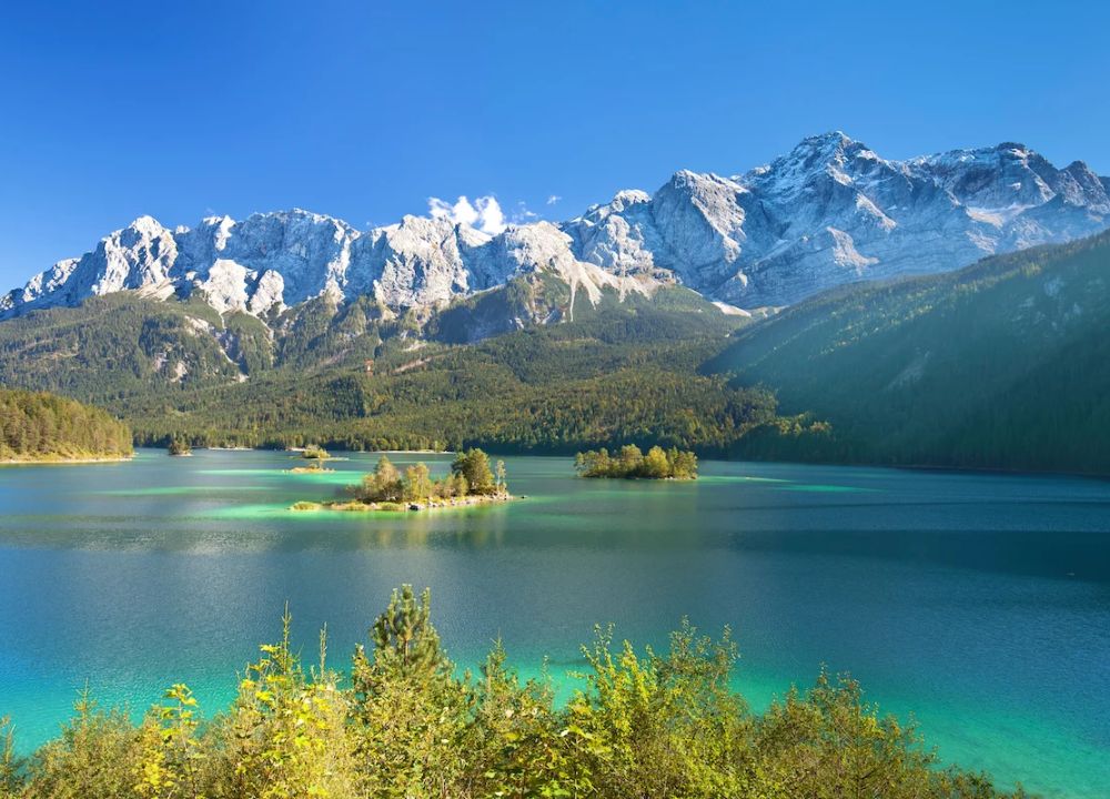 随后,我们将乘坐缆车下到由阿尔卑斯融雪形成的艾布湖(Eibsee),开启今天的环湖轻徒步。环湖徒步后,如果体力允许,我们将攀爬至半山腰的观景点,从高处一览楚格峰下如绿宝石般清澈的艾布湖。