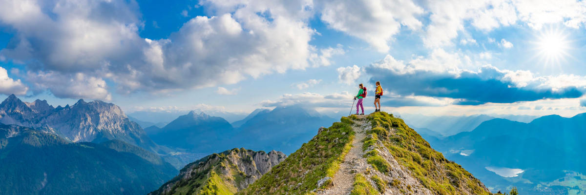 今日,我们将踏上德奥间知名的卡文德尔高路(Karwendel Höhenweg),在这个跨越德奥两国的自然公园里一路前行,最后抵达哈勒朗格小屋。哈勒朗格小屋地处卡文德尔自然公园的心脏,是数条阿尔卑斯知名徒步线路的交汇点。在这里,您将有机会遇到行走慕尼黑至威尼斯的梦幻小径(Traumpfad München/Venidig)的旅人,也会碰到挑战奥地利知名长距离线路鹰之路(Adler)的徒步者。当然,这里也会有很多跟你一样行走卡文德尔高路的的同行者。