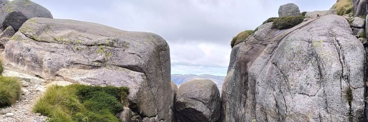 清早,我们驱车前往吕瑟博滕(Lysebotn),开启今天的徒步之旅,目标是挪威一处考验胆量的著名景观——奇迹石(Kjerag)。奇迹石是挪威最负盛名的旅游景点,这块有5立方米大的石头卡在绝壁间,坐落于挪威谢拉格山的山顶之上,距离谷底大约1000米。“奇迹石”也是一块“勇敢者之石”,如果你有胆量爬到奇迹石上面,谷底的无限风光便可一览无余。但对于胆小的旅行者,有必要提醒他们“千万不要往下看”,万一腿一软,没准就跟这个世界告别了。
