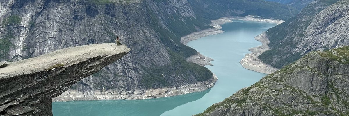 早餐后,我们将驱车抵达蒂瑟达尔(Tyssedal)。这次徒步的重头戏就是恶魔之舌(Trolltunga)徒步,这也是全程难度系数最高的徒步,全程有20多公里的长度,将近900米的累计海拔落差。虽然这是对我们身心的一次巨大挑战,但是一路的美丽风景也是对我们最好的回报。