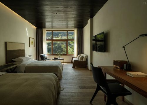 秘境湾酒店宛如一颗璀璨的明珠,镶嵌在怒江之滨,隐藏在秘境森林的怀抱中。这片占地21亩的山水宝地,以其独特的傈僳美学设计理念,为您带来别具一格的视觉享受。6栋拥有百年历史的傈僳老宅,经过工匠们的精心改造,焕发出新的生机与魅力。270°的落地窗设计,将怒江的碧波荡漾与青山的连绵起伏尽收眼底,让您仿佛置身于一幅美丽的山水画卷之中。