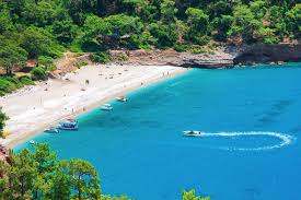 离开遗址后,沿林间步道继续前行。随着海拔变化,视野逐渐开阔,地中海标志性的蓝绿色海岸线在眼前铺展开来。步道最终下行至厄吕代尼兹潟湖(Ölüdeniz Lagoon)——这里被誉为地中海最具代表性的海滩之一,以层次丰富的蓝绿色海水和洁净沙滩闻名,同时也是国家级自然保护区与“蓝旗海滩”。