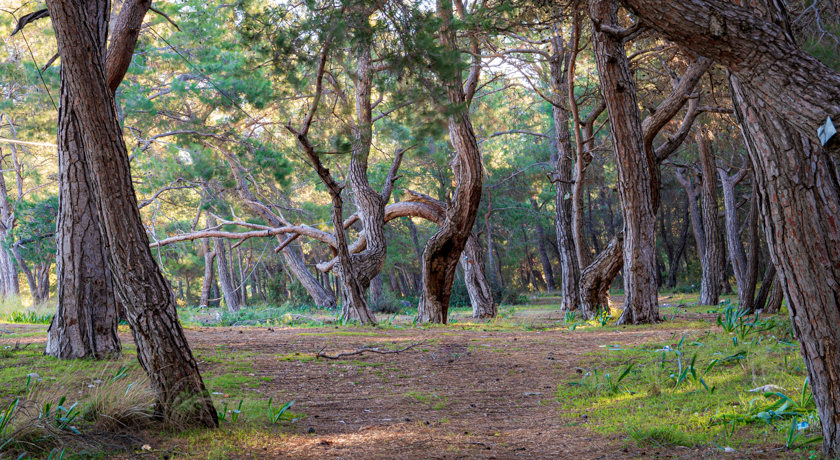一路穿行于橡树林与松林之间,途中可见旧水窖与零散分布的橄榄园,呈现出典型的地中海乡村景观。随着路线推进,视野不断向海侧展开,可从高处俯瞰下方层层叠叠的海湾与海岸线。