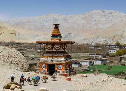 从察让驱车前往木斯塘王国的都城——洛曼塘(Lo Manthang),这是木斯塘历史和文化的中心,也是世界上保存最完好的中世纪城市之一。